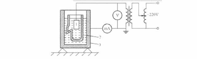 在被試手套內部放人電阻率不大于100Ω•m的水,如自來水,然后浸入盛有相同水的金屬盆中,使手套內外水平面呈相同高度,手套應有90mm的露出水面部分,這一部分應該擦干,試驗接線如下圖所示。