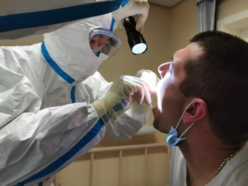 一線的衛(wèi)生檢疫人員,已經(jīng)忙到根本沒時(shí)間坐下。他們的輪班是這樣的——從天9時(shí)到21時(shí),回家睡一覺,第二天又來上班,從21時(shí)做到第三天的9時(shí)。他們從節(jié)前一直戰(zhàn)斗到現(xiàn)在,其中,有人取消了婚期,有人無法陪夫人分娩,也有人將兩個(gè)孩子單獨(dú)拋在家中。隔三差五,就有人忙到昏倒——他們穿著規(guī)定時(shí)效為4小時(shí)的防護(hù)服,但往往10小時(shí)都脫不下來,期間滴水不沾、粒米不進(jìn),也不上廁所。記者在現(xiàn)場(chǎng)看到,有檢疫關(guān)員們正在互相幫助改善防護(hù)服——沒有更高級(jí)別的膠條防護(hù)服,他們只能用玻璃膠布幫助同事將手腕處手套與防護(hù)服的連接處盡可能地封住。他們都很珍惜防護(hù)物資,專門有個(gè)物資小組,每天掌握庫存、統(tǒng)計(jì)現(xiàn)場(chǎng)使用量,再精準(zhǔn)地向上級(jí)申請(qǐng)。
