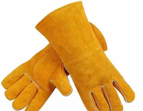為防御焊接時的高溫、熔融金屬、火花燒灼手的個人防護用具。采用牛、豬狨革或二層革制成,按指型不同分為二指型、三指型和五指型。焊工手套有嚴格外觀要求。一級品要求革身厚薄均勻,豐滿柔軟而有彈性,革面絨毛細致、均勻、堅牢、顏色深淺一致,無油膩感。二級品:革身缺乏豐滿彈性、革面絨毛粗、顏色略有深淺。