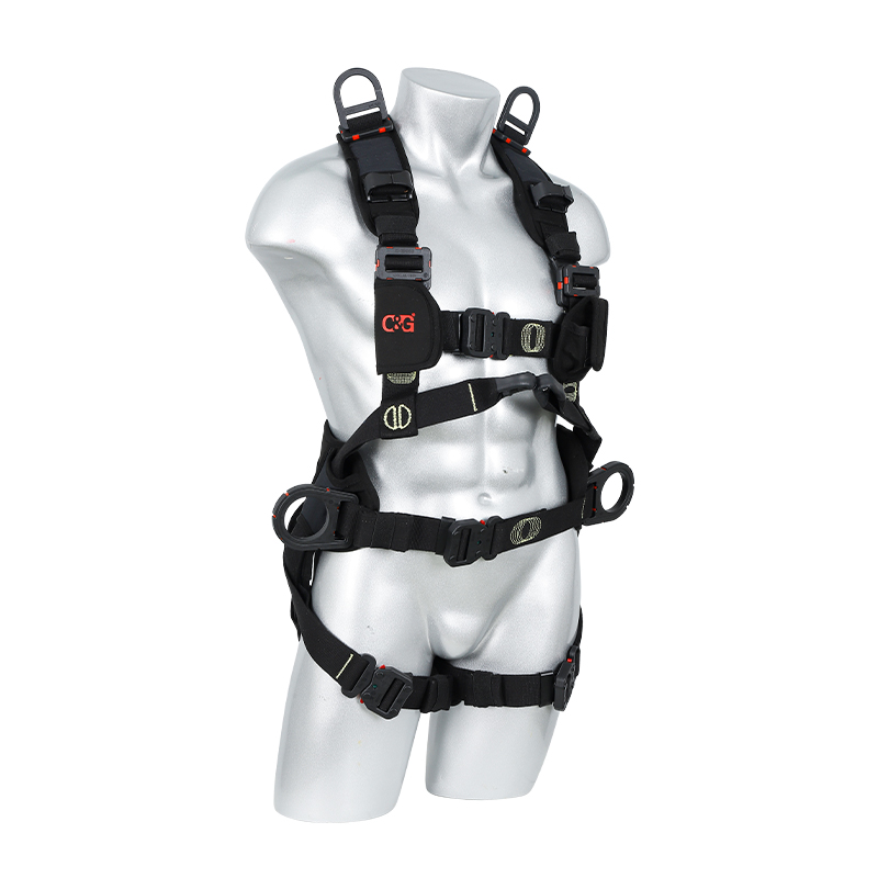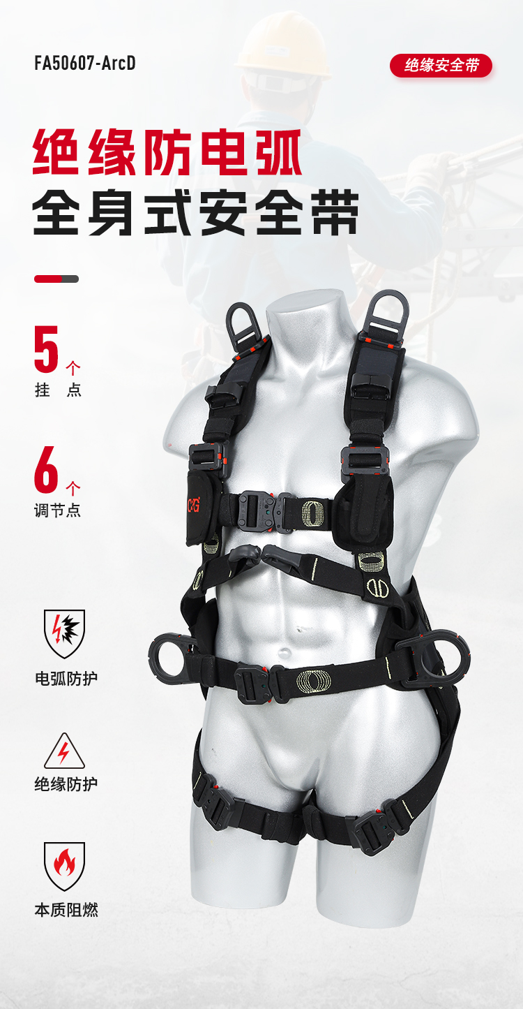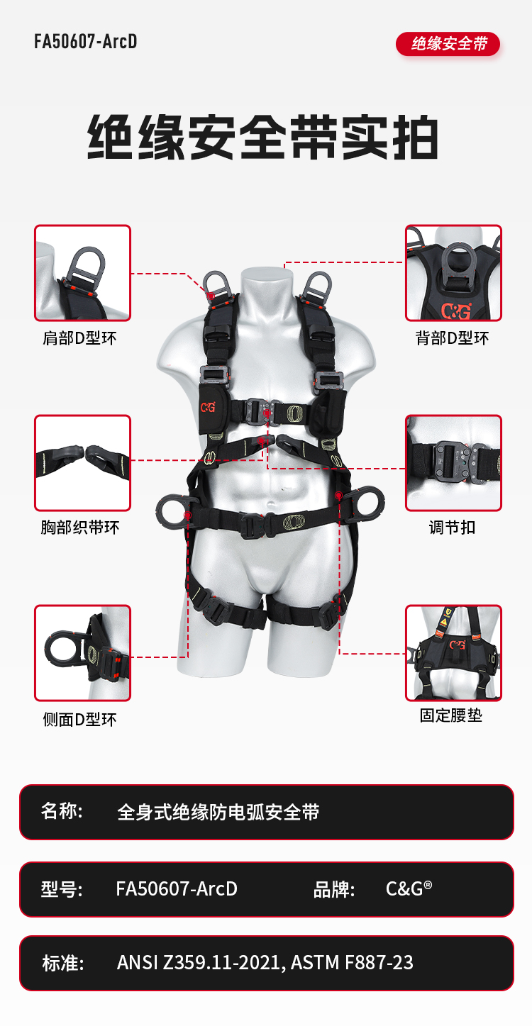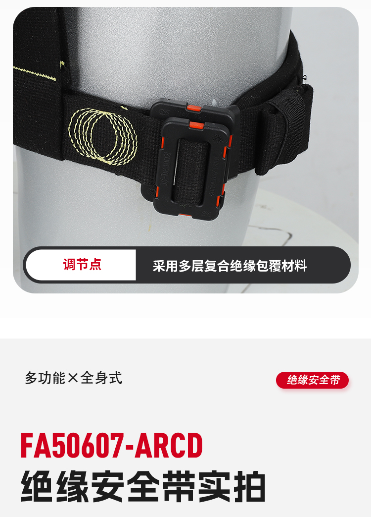 1、5個(gè)掛點(diǎn):后背1個(gè),胸前1個(gè),腰部2個(gè),肩部 2、5個(gè)調(diào)節(jié)點(diǎn):腹,胸,肩 3、織帶材質(zhì):芳綸+合成纖維 4、五金件:合金鋼+絕緣復(fù)合層 5、調(diào)節(jié)扣:口日字 6、帶護(hù)腰 7、標(biāo)準(zhǔn):GB6095-2021 8、適用:區(qū)域限制、圍桿作業(yè)、墜落懸掛 9、訂貨號:630825013