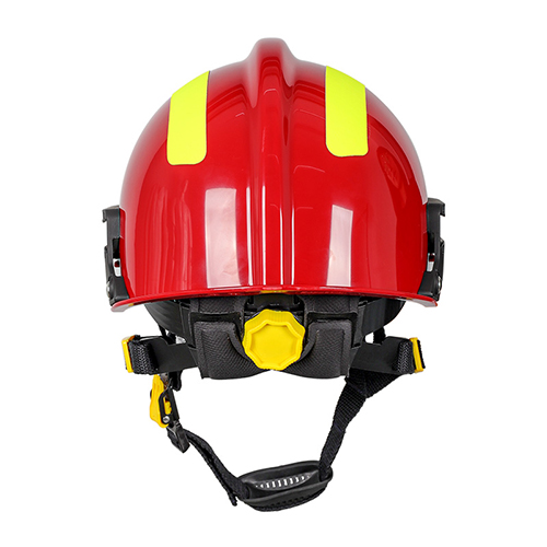 佩戴裝置:包括帽箍和系帶,耐高溫阻燃材質(zhì)。在盔體后沿下側(cè)設(shè)頭圍調(diào)節(jié)旋鈕;系帶可調(diào)節(jié)佩戴松緊,加裝帶孔透氣下頦托;插扣為快脫插扣;